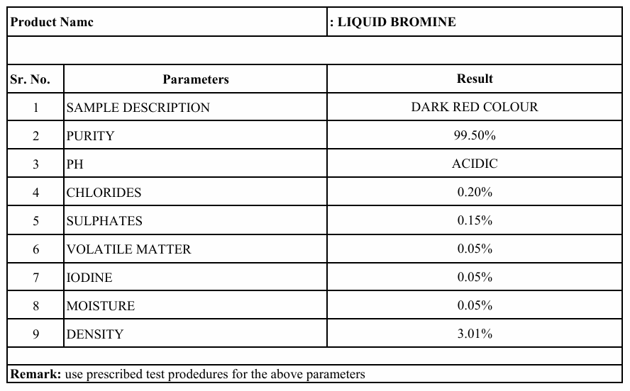 Specifications – Bromine