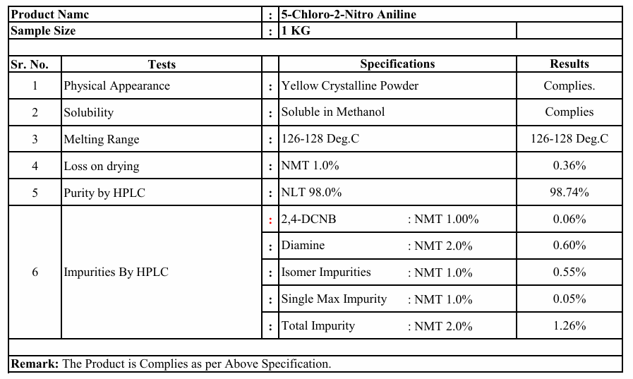 CNA ( 5 CHLORO 2 NITRO ANILINE)