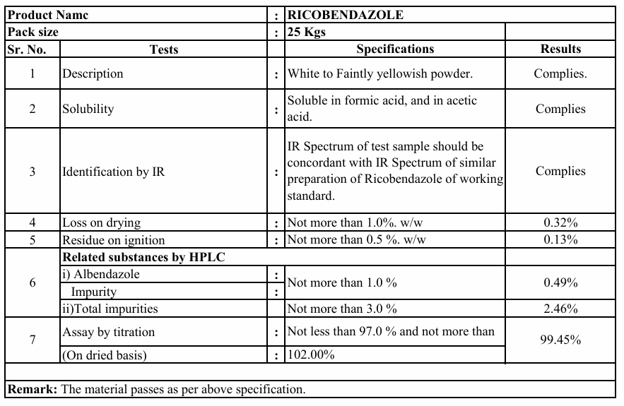 Because of its broad spectrum and reliable performance, Ricobendazole is widely incorporated into strategic deworming programs, either as injectable formulations or oral drenches and suspensions. Consistent use under veterinary guidance helps improve growth rates, feed conversion and overall health, supporting more efficient and sustainable livestock production while safeguarding animal welfare.
